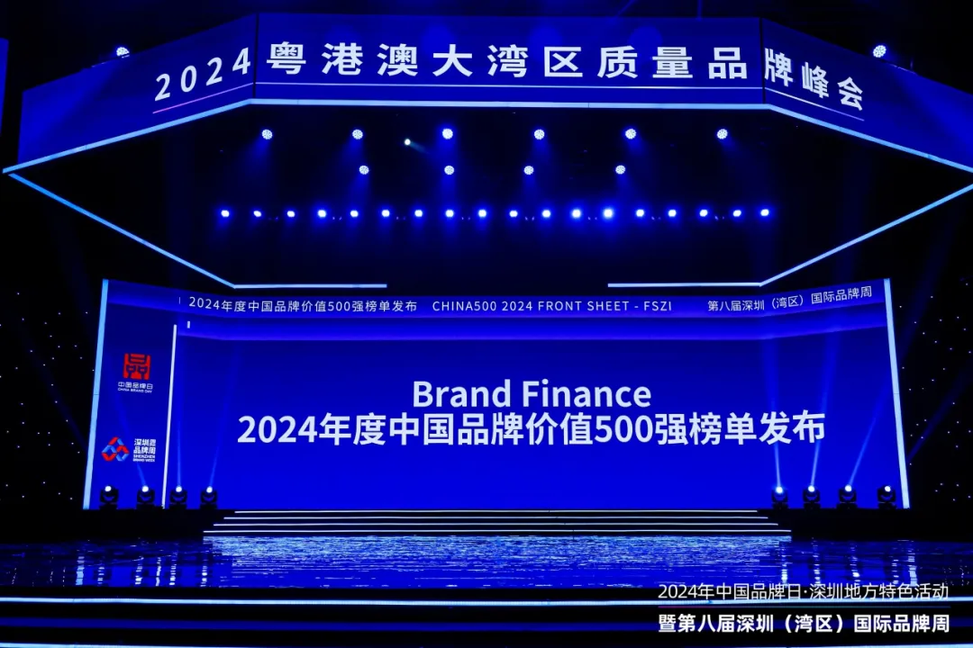 5月9日下午舉行的第八屆“深圳(灣區)國際品牌周”主場活動——2024粵港澳大灣區質量品牌峰會上,每年在達沃斯世界經濟論壇年會上發布全球品牌價值500強的國際著名品牌價值評估咨詢機構Brand Finance,聯合深圳工業總會獨家發布了“2024中國品牌價值500強”中英文榜單。