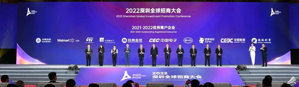 在今年的招商大會上,深圳市領導為前來參會的跨國公司總部企業、深圳招商顧問和優秀企業代表頒牌。百勝中國等企業被評為“2022深圳市跨國公司總部企業”,中國電子、招商金控、比亞迪等企業獲評“2021-2022優秀落戶企業”。為進一步壯大深圳招商引資的“鵬友圈”,大會為亞馬遜全球副總裁Regien De Bleecker(雷振君)、京東方高級副總裁陸寬、邁勝醫療董事長田源、阿爾特汽車董事長宣奇武、深圳天使母基金董事長姚小雄等部分“深圳招商顧問”代表頒發委任書。