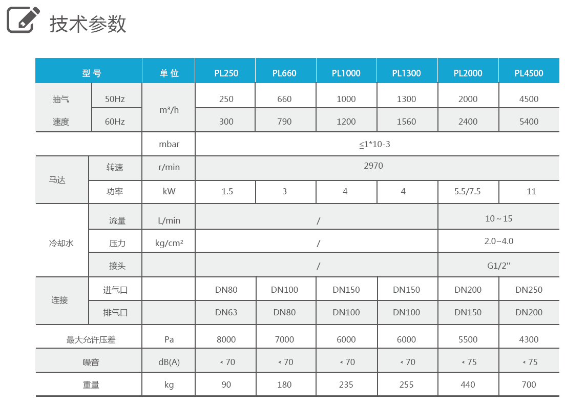 高效轉子型線設計,可實現優良的極限真空性能。雙端軸支撐,震動低,運轉可靠性高??梢罁瞥探橘|做防腐涂層處理,適用于腐蝕性及粉塵類制程。