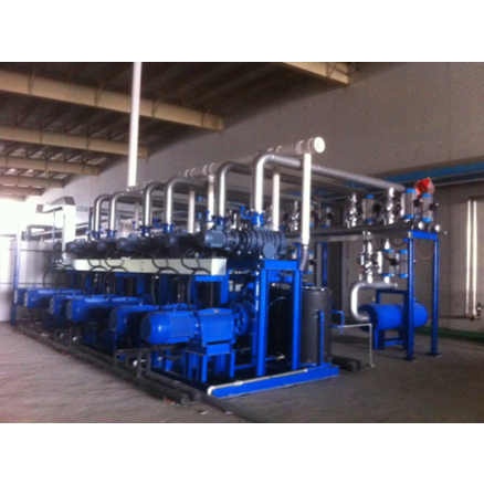 先起動前級液環(huán)真空泵,當(dāng)液環(huán)真空泵將系統(tǒng)壓力抽到羅茨真空泵的起動壓力時再逐級起動中間